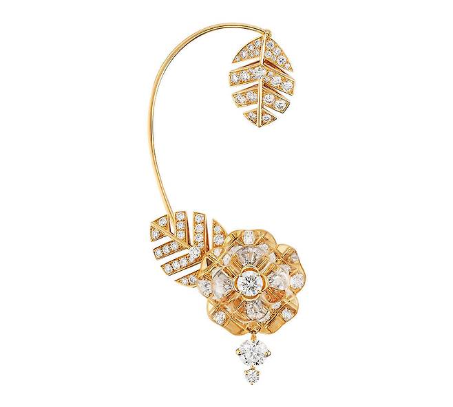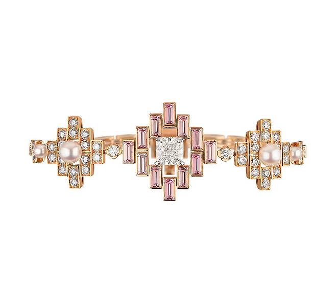 1920년 가브리엘 샤넬은 생애 처음 베니스로 향했다. 웅장한 위용을 뽐내는 성의 파사드 구조, 교회 바닥에 깔린 형형색색 대리석 등 도시의 멋진 건축물을 마주한 그녀는 예술적 영감에 흠뻑 취했다. 그리고 이때 느낀 황홀한 감정을 떠올려 ‘눈부신’이라는 뜻의 에블리상뜨(Eblouissante), 베니스에 대한 경의를 표하는 의미의 세레니심(Serenissime) 주얼리 세트를 디자인했다. 목선을 따라 흘러내리는 유려한 실루엣의 에블리상뜨 네크리스는 자연스럽게 대칭을 이뤄 샤넬 하우스의 아이코닉한 퀼팅 패턴이 연상된다. 샹들리에처럼 층층이 달린 모티브 장식은 탈착 가능한데, 개별적으로 분리해 이어링으로도 착용할 수 있다. 비잔틴 양식으로 꾸민 성 마르코 대성당(Basilica San Marco)의 모자이크 벽면을 재해석한 세레니심은 만다린 사파이어, 핑크 파파라차 사파이어 등 갖가지 진귀한 원석의 영롱한 색과 빛으로 반짝여 당시 가브리엘 샤넬이 느낀 베니스의 첫인상을 그대로 구현했다.