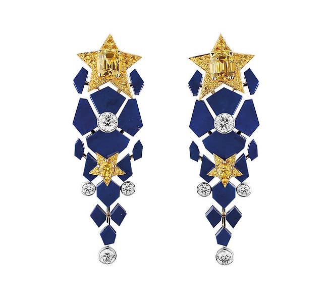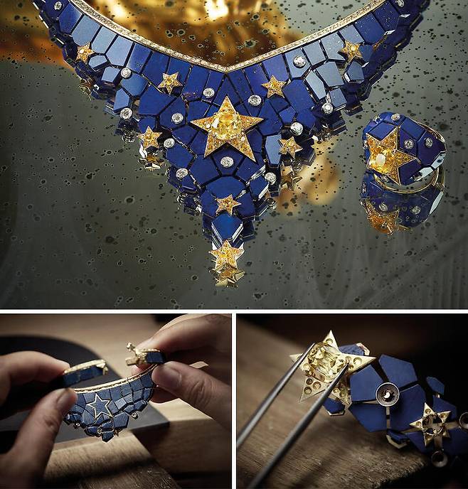 아래 왼쪽 라피스 라줄리와 다이아몬드를 세팅한 볼류트 베니티엔 소뜨와르 네크리스와 링.