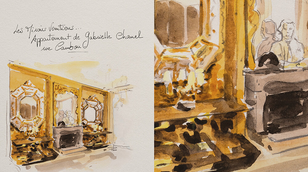 가브리엘 샤넬의 별자리 동물인 사자는 베니스 전반에 깃든 예술정신을 뜻하는 대상이기도 하다. 2013년에 첫선을 보인 사자 모티브 하이 주얼리 컬렉션 이후 스피리토 디 베네치아 테마로 등장한 사자 형상 주얼리는 자유로우면서도 숭고한 힘을 간직하고 있다. 두 마리 사자가 다이아몬드를 지키는 모습을 그린 리옹 시크릿(Lion Secret), 성 마르코 대성당의 파사드 벽면에 우뚝 선 날개 달린 사자 뒤 파란 하늘 배경 장식을 그대로 옮겨놓은 듯한 코스탈라시옹 애스트랄(Constellation Astrale), 베니스의 특별한 상징적 동물인 사자를 찬란하게 빛나는 옐로 사파이어로 표현한 리옹 앙블레마티크(Lion Emblematique) 등 총 다섯 가지 주얼리 세트는 형언할 수 없는 압도적 분위기를 풍기며 맹수의 강렬한 아름다움을 드러낸다.