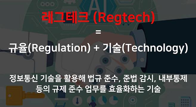 빅데이터, 클라우드 컴퓨팅, 머신러닝 등 신기술을 활용하여 기존 규제 준수 업무를 사전 예방형 및 자동형으로 대체하는 혁신적인 IT기술을 의미하는 것인데요,