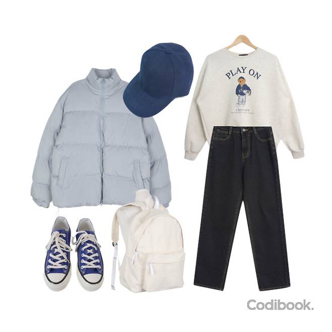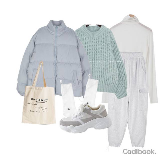 하늘색 패딩 코디 01
