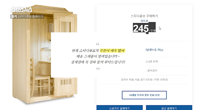 "안전하고 건강하게 공부하게 만들 수 있는 공간을 생각한 거죠. 저희 딸이 고3 때에요. 꼭 12시 넘어서 독서실을 거쳐서 오는 거에요. 하루는 (밖에서) 고함소리가 나는 거에요. 직감적으로 딸 목소리인 거죠. 그냥 맨발로 뛰어 내려갔어요. 따라 들어왔나 봐요, 치한이. 그냥 안전하게 네 방에서 공부하면 안되느냐 (했더니) 자기 방에서는 공부가 안된대요. 스터디큐브를 그래서 만들게 된 거거든요."