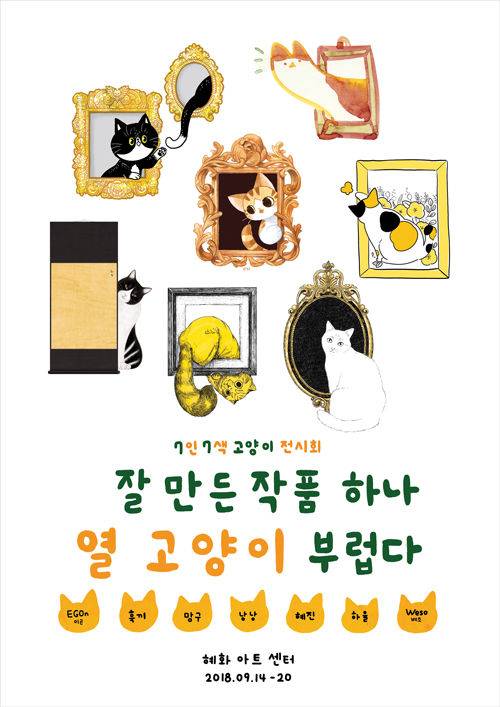 7인 7색의 고양이 작품전 <잘 만든 작품 하나, 열 고양이 부럽다>가 혜화아트센트에서 9월 14일부터 20일까지 열린다.