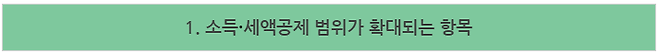 - 중도 입·퇴사로 근로기간이 단절된 근로자도 기부금, 연금계좌납입액, 개인연금저축, 소기업·소상공인 공제부금, 투자조합 등 출자액은 근무기간에 관계없이 공제 가능함.