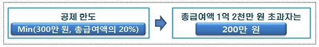 올해부터는 총급여액이 1억 2천만 원을 초과하는 근로소득자에 대한 공제 한도를 300만 원에서 200만 원으로 축소함
