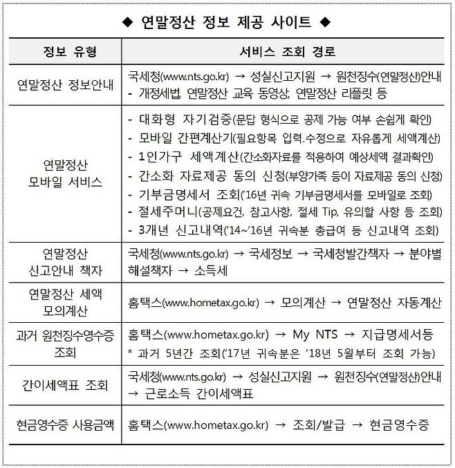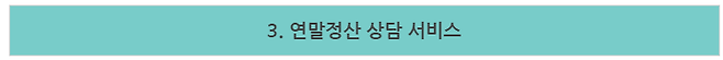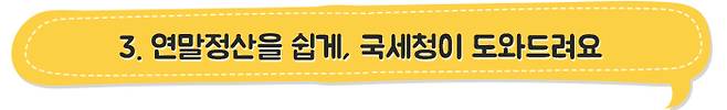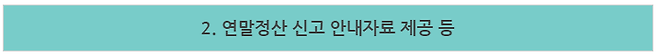 -연말정산 신고안내 책자(e-book), 핵심사항을 정리한 리플릿(홍보물) 및 서비스 이용 방법을 스스로 학습할 수 있는 동영상 강의를 지원함.
