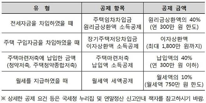 -무주택 세대의 근로자는 주택을 구입 또는 임차하기 위해 지출한 금액에 대해 소득·세액공제를 받을 수 있음.