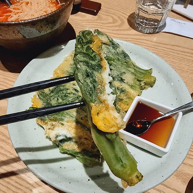5월 이맘때에 좋은 메뉴로는 두릅전을 추천한다. 사실, 봄의 전령사라 불리는 쑥, 도다리 음식은 락희옥 외에 다른 가게에서도 맛볼 수 있지만 두릅만을 단품 메뉴로 내는 곳은 거의 없다. 두릅은 대표적인 봄철 채소로서 비타민 A, C, 칼슘과 섬유소질 함량이 높고 단백질 또한 많아서 다이어트 식품으로도 손색 없다. 락희옥의 두릅전은 싱싱한 두릅에 달걀과 밀가루를 활용한 튀김 반죽을 입혀서 부친다. 밀가루의 함량이 워낙 적어서 다 부치고 나면 노란 달걀 옷을 입은 초록 채소 모습 그대로다. 하나 집어 들고 살짝 간장에 찍어 먹으면 먼저 두릅 본연의 향과 쌉싸래한 맛이 그대로 느껴진다. 여기에 고소한 달걀 맛과 달큼한 간장 맛이 더해지니 조화롭다. 맛있는 두릅전인 것은 사실이나 락희옥의 메뉴답게 가격대가 있는 편이다. 두릅은 기본적으로 가격대가 비싼 채소이나 올해처럼 두릅 농사가 잘 됐을 때도 3만원이라는 가격은 조금 아쉽다.