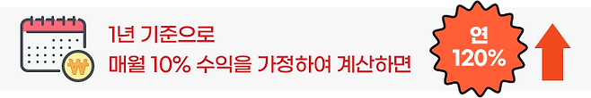 그리고 이 펀드에 투자한 투자기간이 한 달이라면, 이를 1년 기준으로 매월 10%씩 수익을 낸다고 가정하여 계산하면 연 120%가 되는 겁니다.