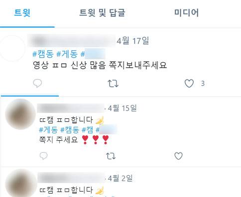 트위터를 수소문하니 "남성의 음란행위 영상을 판매한다, 원한다면 쪽지를 보내달라"는 계정이 여럿 발견됐습니다.