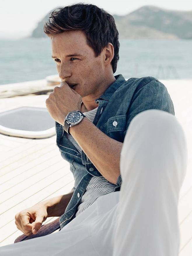오늘 그 질문과 관련해 이야기할 수 있게 되어 매우 기쁘게 생각한다. 한 20년 전만 하더라도 우리는 신디 크로포드(**오메가의 최장수 홍보대사인 슈퍼모델)를 제외하면 대외적으로 브랜드 홍보대사를 내세우는 일이 드물었다. 당시엔 브랜드의 이름을 강조하고 제품 자체의 밸류를 알리는데 주로 포커스를 맞췄기 때문이다. 하지만 테스티모니얼(Testimonial) 형태의 광고가 주목을 받기 시작하면서 우리 역시 브랜드 홍보대사의 이미지와 재능으로부터 도움을 받을 수 있게 되었다. 현재의 오메가는 시계제조사로서 이미 기술력으로 정평이 나있고 성공적인 행보를 이어가고 있다. 하지만 우리는 패션 브랜드가 아니기에 우리의 패밀리를, 그렇다, 나는 우리 홍보대사들을 브랜드의 가족으로 여기기 때문에 가족의 구성원을 적게 유지하되 오랫동안 좋은 관계를 지속하고 싶은 것이다. 몇 해 전 에디와 처음 미팅을 가졌을 때도 느꼈지만, 그는 오스카상을 받은 세계적인 스타임에도 거만함이란 찾아볼 수가 없었고 누구에게든 친밀하게 다가가는 매력이 있었다. 게다가 에디는 자신의 분야에서 큰 성공을 거둔 사람답게 매사 열정과 진심을 담아 성실하게 임한다. 나는 그의 진솔하면서도 묵묵한 모습이 우리 브랜드 이미지와 잘 어울린다고 생각하고, 기존의 우리 남성 컬렉션을 대표하는 인물들인 조지 클루니와 다니엘 크레이그와도 이미지가 많이 다르기 때문에 새로운 세대와 소통하는데 도움이 된다고 판단하고 있다.