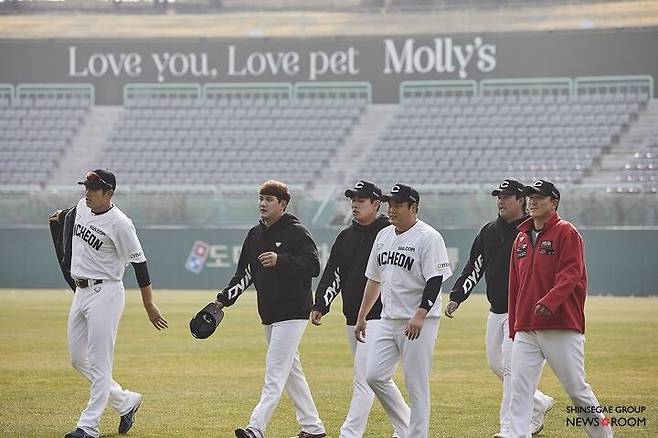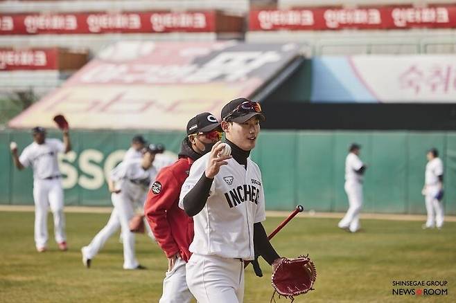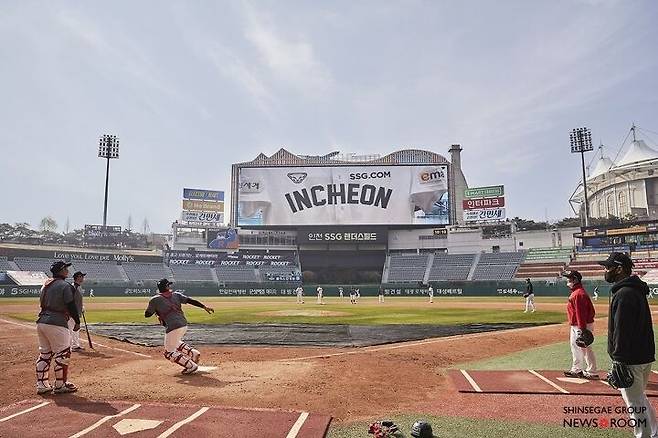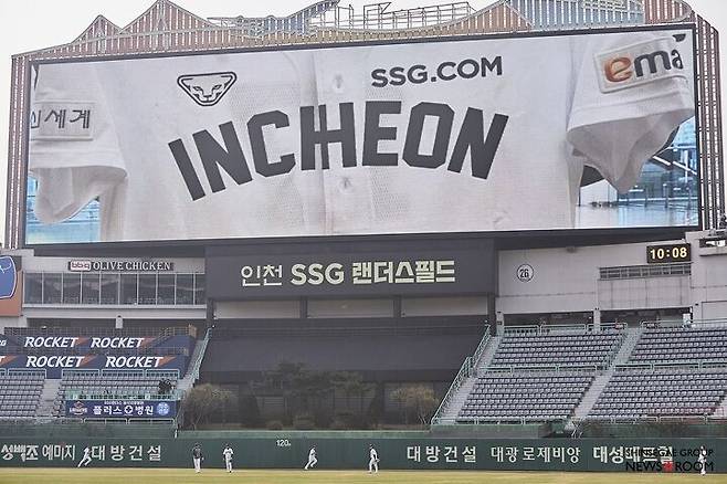 이윽고 그라운드에는 선수들이 가벼운 이야기를 주고받으며 몸을 풀기 시작한다. 이번에 새로 합류한 추신수(39)와 정상호(39)의 모습도 반갑다. 모든 선수와 코치의 유니폼에도 신세계그룹 상징들이 붙었다. 양팔에는 이마트와 신세계의 로고가 있고 왼쪽 가슴에는 SSG.COM이 있다. 모자에는 피코크와 노브랜드가 새겨졌다. 새로운 유니폼을 입은 SSG 랜더스 선수들이 필드에 들어서니 그라운드가 꽉 찬 기분이다.