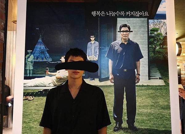 감사 인증샷만큼이나 또 하나의 화제가 되고 있는 것은 포스터 패러디이다. 임시완, 이시영, 소진, 정경호 등 스타들도 ‘기생충’의 매력에 매료된 듯 관람 인증샷을 포스터 패러디로 센스있게 남겼다. 임시완은 지난 달 28일 자신의 SNS에 “Who is who?”라는 글과 함께 사진을 게재했다. 송강호와 같은 검은색 셔츠를 입고 자세와 눈을 가린 띠까지 완벽하게 포스터를 재현했다. 이시영 역시 영화 개봉 당일 ‘기생충’ 포스터 앞에서 송강호와 같은 포즈로 눈을 가린 채 서있는 인증샷을 공개했다. 백종원은 영화관이 아닌 영화 관람 후 음식점을 배경으로 포스터 패러디 인증샷을 남겨 웃음을 자아낸다.