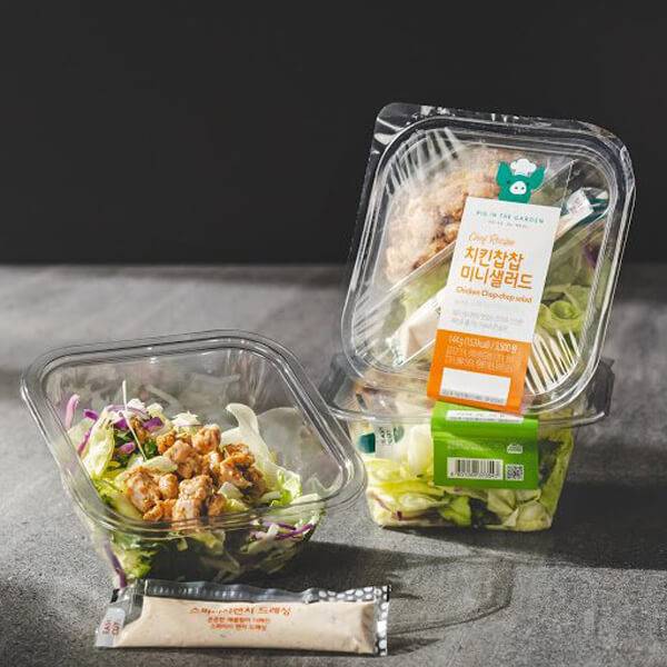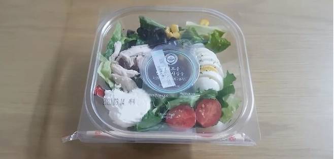 전체적인 내용물은 닭가슴살, 리코타치즈, 삶은 달걀, 방울토마토, 스위트콘, 올리브, 건포도, 양상추 등이 알차게 들어있다. 샐러드 드레싱은 발사믹 소스로 작은 플라스틱 용기에 따로 들어있다. 젓가락도 함께 들어있어 야외에서 도시락 대신 먹기에도 좋다. 발사믹 소스로 인해 새콤달콤하면서 아삭한 식감이 입안을 개운하게 만들어준다. 다만 드레싱 소스가 조금 짤 수도 있으니 초반에 미리 다 붓지 말고 먹어가면서 붓는 게 좋을 듯하다.