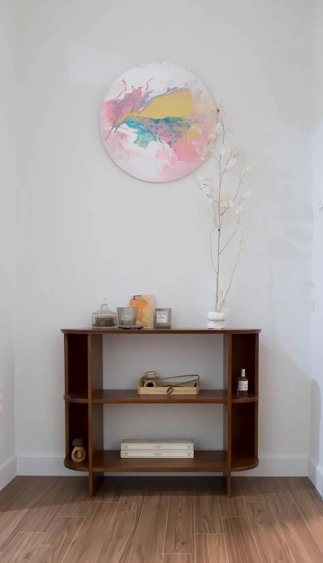 마른 나뭇가지가 꽂혀있는 동그란 오브제는 아들과 지점토로 만들었어요. 무광 도자기 소품들을 흉내 내서 도넛 모양도 만들어 보았고요. 거실 프로젝터가 있는 선반 맨 위에도 마감이 떨어지는 아메바 같은 소품 두 개가 있는데, 아이와 제가 지점토로 장난치듯 만든 것들이에요.