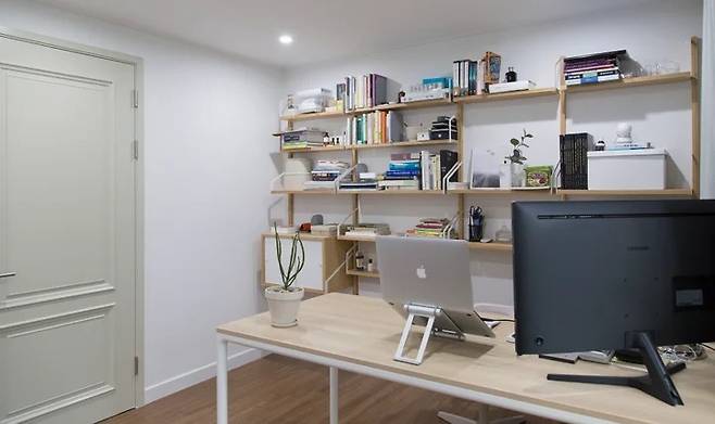 저는 집에서 일하는 경우가 많아서 서재를 홈 오피스로 꾸몄어요. 삐뽀 삐뽀 소아과와 전공서적이 공존하고 있네요.