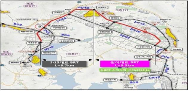 최근 인구 100만 명 이상의 특례 시로 지정된 창원에도 원이대로 일대 가음정사거리∼도계광장∼육호광장에 이르는 18.0㎞ 구간에 창원 S-BRT가 놓이게 된다. 작년 12월 개발계획 고시를 기점으로 가음정사거리∼도계광장을 잇는 9.3㎞ 구간을 우선 구축하게 되며 개통 목표 시기는 2023년이다.
