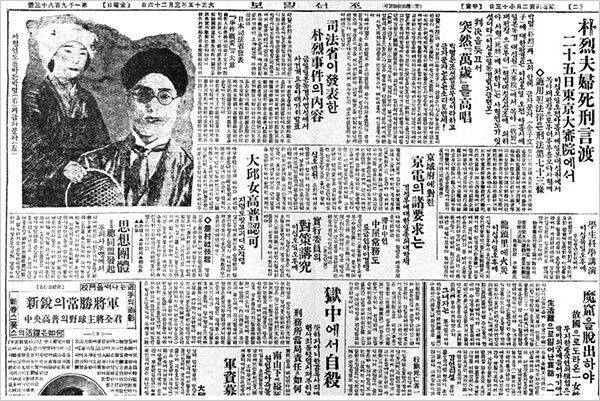 1926년 3월 25일 일본의 최고재판소인 대심원에서 대역죄로 기소된 조선인 아나키스트 박열(1902~1974)과 그의 일본인 부인 가네코 후미코(1903~1926)의 결심 공판이 열렸다. 정복과 사복 차림의 경찰 200여 명과 헌병 30명이 법정 출입자를 삼엄하게 검문하는 등 법원 안팎을 통제하고 있었다.