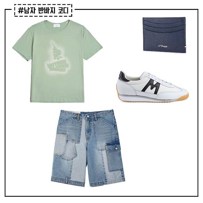 데님 반바지와 파스텔톤의 반팔 티셔츠 매치한다면 유니크한 여름 코디 완성 할