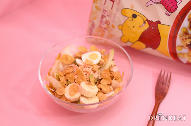 다이어터나 유지어터 등, 건강한 몸을 가꾸고 싶은 이들에게는 시리얼 토핑을 얹은 샐러드를 추천할게요. 튀기는 방식이 아닌 굽는 방식으로 만들어져 소화가 잘 되고, 당류가 적기 때문에 식단 조절용으로 적합한 시리얼과 샐러드를 함께 먹으면 영양소를 보다 균형 있게 섭취할 수 있어요. 잘 씻은 채소 위, 닭가슴살이나 달걀, 고구마, 두부 등 원하는 토핑을 얹고 견과류나 크랜베리 같은 말린 과일이 듬뿍 들어간 시리얼을 뿌려 주면 끝! 기분 좋은 바삭함이 식감을 살리며, 건강하고 즐거운 식사를 할 수 있도록 도와 줄거예요.