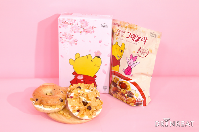든든한 한 끼 식사로 딱 좋은 베이글. 이제까지 크림치즈만 발라 먹었다면, 시리얼을 추가해 보는 것은 어떨까요. 두꺼운 베이글에 크림치즈를 양껏 발라 준 뒤, 켈로그 크랜베리 아몬드 그래놀라를 올려 주면 두툼한 베이글 샌드위치가 손쉽게 완성됩니다. 꾸덕한 크림치즈와 바삭한 시리얼이 식감과 맛, 모든 면에서 찰떡궁합을 자랑해요. 말린 크랜베리가 새콤달콤함을, 아몬드와 곡물 시리얼이 고소함을 극대화 시키죠.