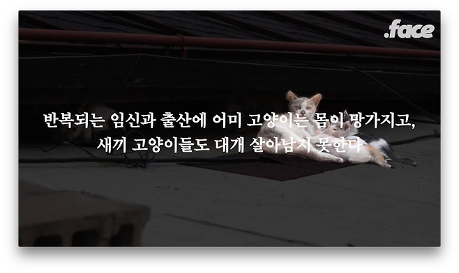그런데 이렇게 태어난 새끼 고양이 넷 중 셋은 거의 죽는다고 합니다. 오래 살 수 없는 열악한 환경 때문입니다.