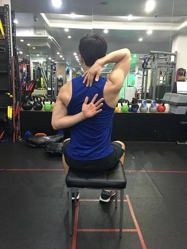 (어깨 유연성 테스트- 양손이 멀수록 유연성이 떨어짐.)