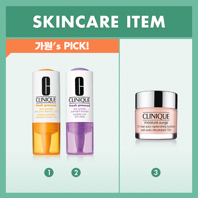 자외선도 강하고, 높은 기온의 날씨인 마카오에선 스페셜 한 스킨케어가 필수. 박가원의 인생 템으로 소개한 제품은 크리니크 안티에이징 듀오 세트다. 이 두 가지 앰플은 아침, 저녁에 각각 사용하면 최고의 시너지 효과를 볼 수 있는데. 오렌지색 제품은 일명 ‘싱싱 비타민 앰플’. 순수 비타민C가 무려 10% 농축돼 있어 브라이트닝과 생기 효과가 뛰어나다. 나이트 케어 때 사용하는 보라색 제품은 ‘탱탱 비타민 앰플’로, 안티에이징에 효과적인 비타민 A가 탄력까지 케어해준다. 스킨 케어 단계는 줄이고, 보습효과를 더 높이고 싶다면? 그녀처럼 수분크림에 2-3방을 섞어서 발라볼 것.