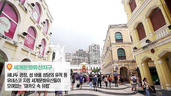 박가원의 마카오 여행 첫 번째 코스는 바로 세계문화유산지구. 마카오를 대표하는 세나두 광장과, 성 바울 성당의 유적 등 유네스코 지정 세계문화유산들이 모여 있어 가볍게 걸으며 돌아보기 좋다. 이국적인 풍경과 다채로운 컬러감 덕분에 SNS 인생 샷을 겟 하기도 제격.