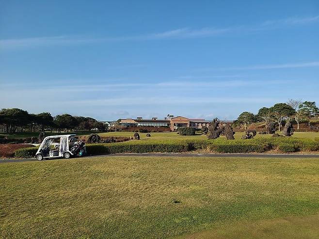 이날 제주도 답지 않게 바람이 그다지 센 편이 아니었습니다. 하지만 정면 맞바람일 경우 많게는 두 클럽을 올려 잡았습니다. 짧으면 벙커에 빠지게 설계된 홀은 가끔 있지만 대체로 위협적이지는 않습니다.