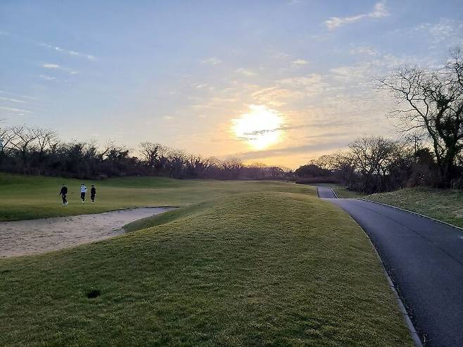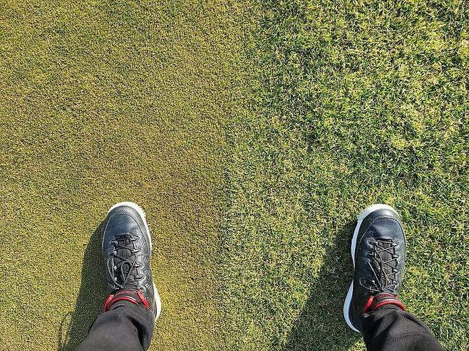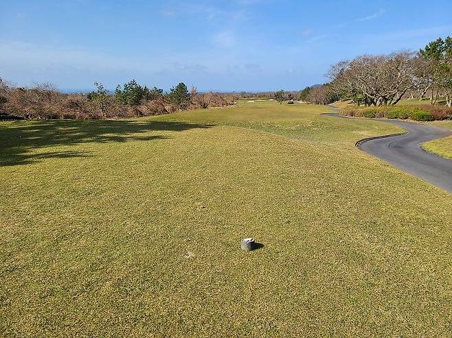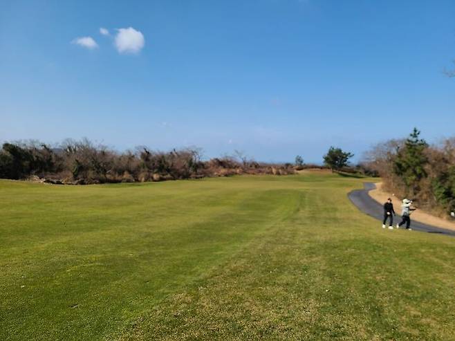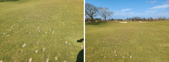 전체적으로 관리 상태는 보통이며, 약간 건조하고 푸석한 느낌의 디봇이 났습니다. 공 라이는 풀 위에 잘 떠있지만, 약간의 뒤땅도 샷 거리를 현저히 줄였습니다. 중지와 양지를 섞은 느낌이랄까? 여름은 어떤 상태일지 모르지만, 겨울 골프를 이 정도 상태로 칠 수 있다는 점에 의미를 두기로 합니다.