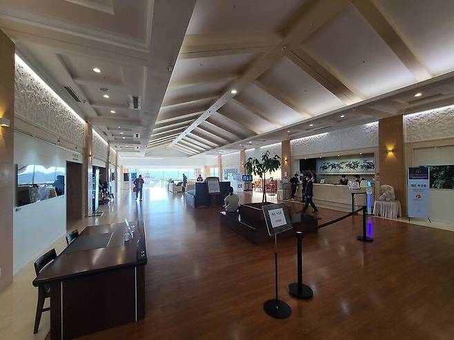 문제는 제주 전체 코스에서 라커룸 사용을 금지한다고 하네요. 코스에서 갈아입으려고 했는데 뜻밖에도 사용이 안 된다고 해서 잠깐 우왕좌왕... 다행히 바로 옆에 위치한 골프텔(?)에 일찍 들어가서 짐을 풀 수 있게 배려해 줬습니다. 또한, 다음날 오전 플레이 후, 늦은 체크아웃도 배려해 줘서 숙소에서 샤워 및 환복을 했네요.