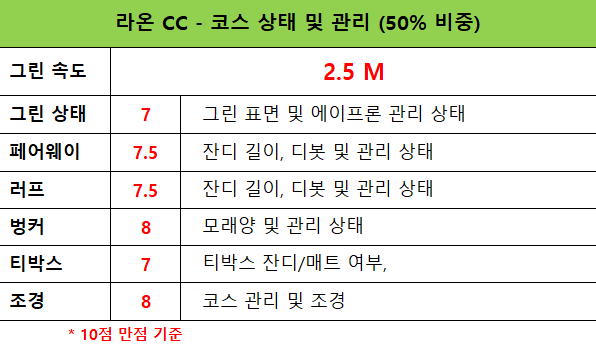 - 골프장: 라온 CC (제주 소재) - 스톤, 레이크, 파인 코스