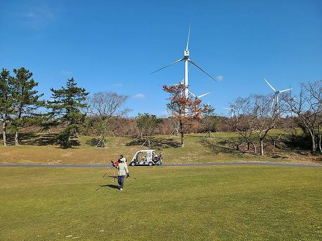 주변 경치라고는 자주 보이는 풍력 발전기 외엔 심심한 코스입니다. 간혹, 티박스에 타이거 우즈 홀, 박세리 홀 등 표시되었습니다.