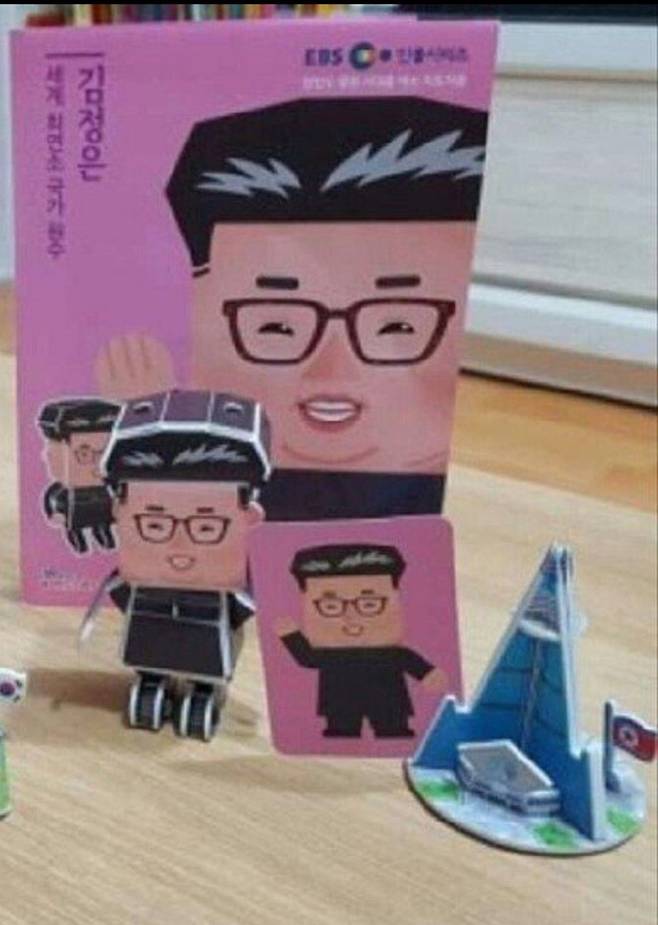 제품은 몸, 대표 건축물 등을 조립하는 입체퍼즐입니다. 김정은을 비롯해 류경호텔까지 있군요. 류경호텔은 평양에 있는 101층 초고층 피라미드식 건축물입니다.
