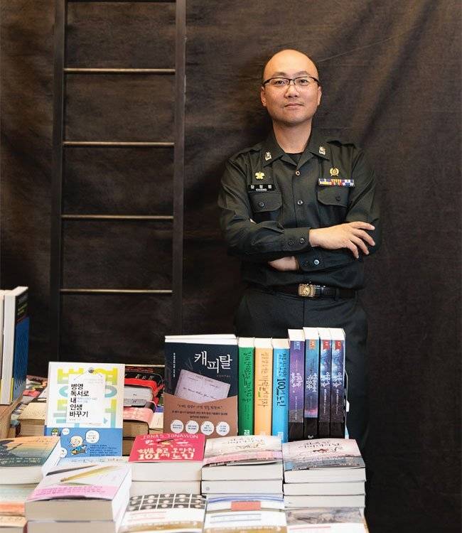 “웬만큼 인기 있는 책들은 진중 문고로 갖춰져 있습니다. 그 외의 책은 부대가 속한 면사무소 도서관에 신청하거나 국방부의 자기계발 지원비 신청을 통해 볼 수도 있죠. 글쓰기 연습을 하면서 병영문학상에 도전할 수도 있습니다. 실제로 이등병 시절부터 영화 시나리오를 준비해 전역 후 영화 배급사와 계약한 경우도 있어요. 장병들이 일과 후에 휴대전화를 사용할 수 있게 되면서 책과 더 멀어질까 걱정입니다. 그렇다고 휴대전화가 무조건 책 읽기에 방해가 된다고 생각하지는 않습니다. 스마트폰으로 전자책을 읽으면서 독서에 재미를 붙였다는 장병도 있으니까요. 후배 장병들도 책 속에서 길을 발견하기를 바라는 마음입니다.”
