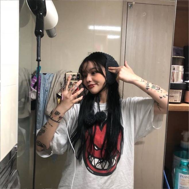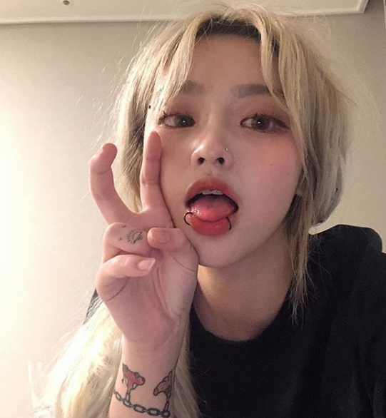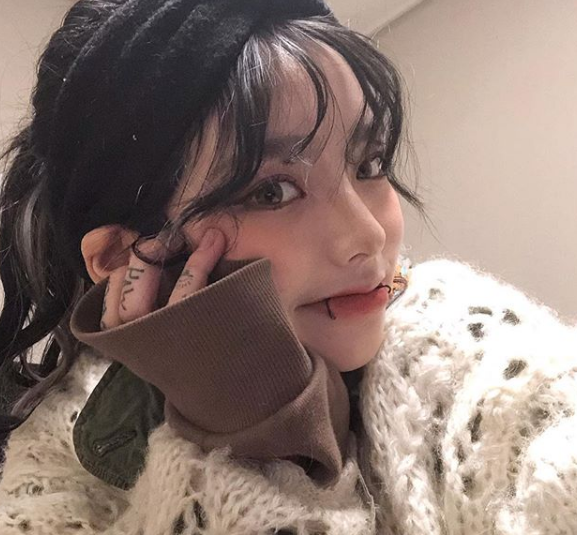 독특한 피어싱과 타투로 한 스타일링이