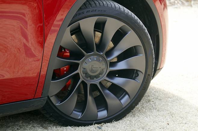 모델 Y 퍼포먼스는 앞뒤 총 2개의 전기모터를 이용해 4개의 바퀴를 굴리는 AWD 방식이다. 정지 상태에서 시속 100㎞까지 3.7초 만에 도달하고, 최고속도는 시속 250㎞에 달한다. 모델 3나 S가 바닥으로 깔려가는 엄청난 가속감을 갖고 있다면, 모델 Y는 꽤 높이가 있는 캐빈이 통째로 '날아가는' 기분이다.