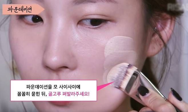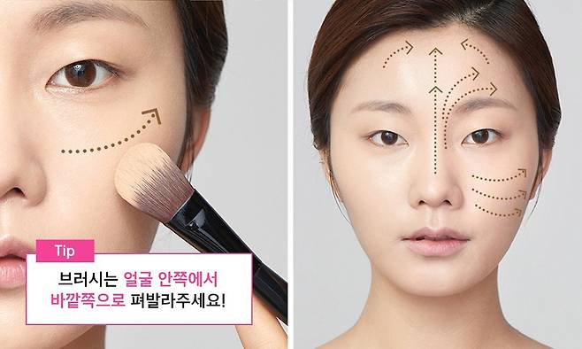 얼굴 안쪽부터 펴 바르기 시작한 후,