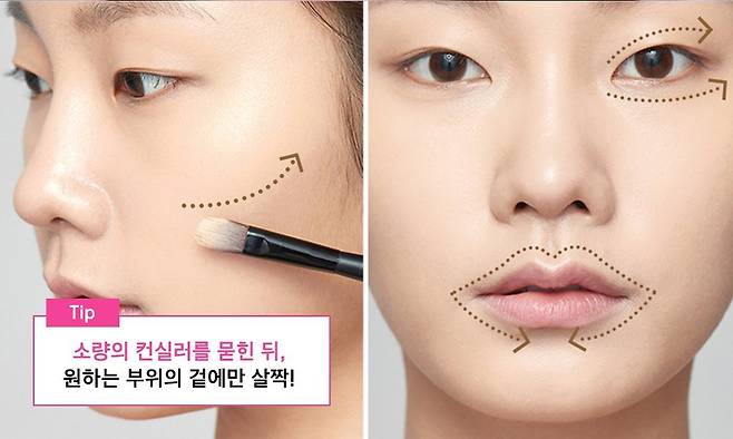 먼저, 컨실러는 브러시에 소량 묻혀주어
