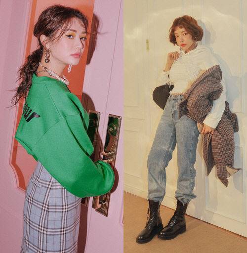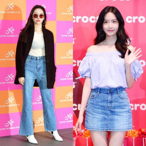 다양한 핏의 데님 아이템도 인기 폭발. 선미 부츠컷 로에지 팬츠부터부터 윤아의 미니스커트까지 모두 임블리 안목이랍니다.