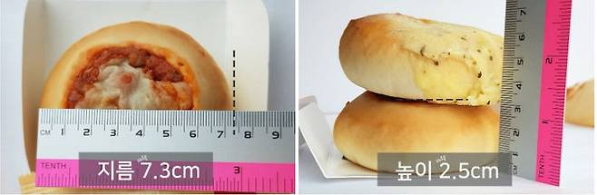 피자 도우 반죽은 틀에 넣고 굽는 것도 아니고, 발효 빵이기 때문에 부푸는 정도에 따라 몇 mm씩 차이가 있는데요. 그래도 고르곤졸라와 콤비네이션 모두 사이즈는 비슷해요. 지름은 7.3cm이고 높이는 2.5cm 정도에요.