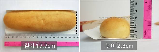 사실 이 피자는 봉지를 열었을 때 덩그러니 빵만 있어서 비주얼에 흠칫했었어요. 그래도 잘라보면 속내는 반전이 있겠죠? 그럼 우선 사이즈부터 측정해볼게요. 길이는 17.7cm이고 높이는 2.8cm 정도에요. 그리고 너비 측정을 깜박했는데, 한 입에 딱 들어가는 아담한 사이즈예요. 한 3.5cm 정도 될 것 같네요.