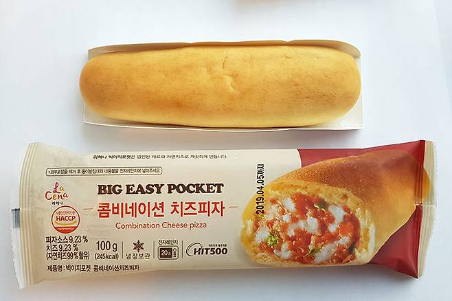 사조 한입피자보다 큼직한 햄과 피망, 옥수수 콘이 보이시죠? 하지만 치즈가 들어있다고는 하는데 입안에서 치즈 맛은 크게 느껴지지 않아요. 똑같은 자연치즈인데... 뭐가 다른 걸까요? 또 하나 아쉬운 점은 빵이 퍼석한 편이라 음료수가 꼭 필요하다는 거예요. 담백하게 즐기기에 좋지만, 기름진 피자를 선호한다면 '한입피자'가 좋을 것 같아요.
