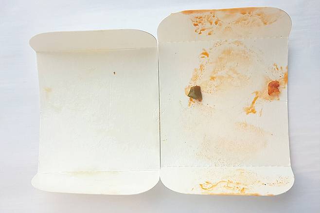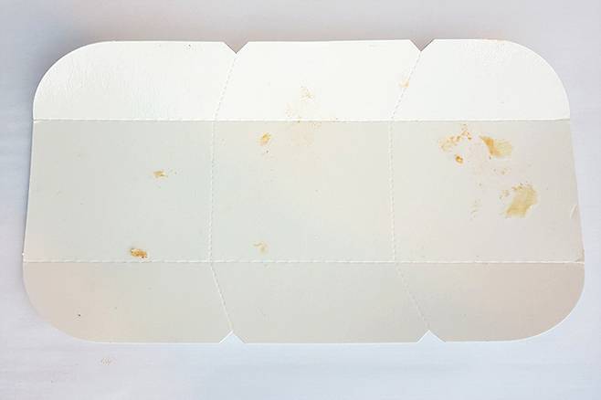 다른 피자 빵과 마찬가지로 피자 도우 자체에는 기름기가 없는 편이지만, 피자치즈가 윗면을 가득 덮고 있어서 먹다 보면 손에 기름이 가장 많이 묻어나요. 토마토소스와 치즈가 섞여서 붉은 기름이 흐르니 옷 조심하세요!