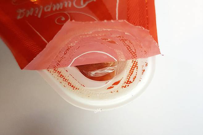 윗면 비닐만 제거한 후 전자레인지에서 50-60초 돌려주면 되는데요. 이것도 전자레인지에 돌리고 난 전후 비주얼적 모습은 변화가 없지만, 이렇게 흐물흐물 촉촉해져요. 자세히 보니 만두에 먹기 좋도록 칼집이 들어가 있네요!