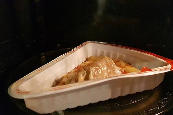 사조 한입피자의 경우 탈산소제가 바닥에 들어있어요! 빵이랑 밀착되어 있어서 지나치기 쉬운데 꼭 제거 후에 전자레인지에 넣어주셔야 해요. 봉지랑 탈산소제를 제거했으면 전자레인지에서 50초 돌려주세요! 문을 열어보면 지글지글 끓고 있는 치즈를 만날 수 있어요. 진짜 뜨거우니 조심하세요!