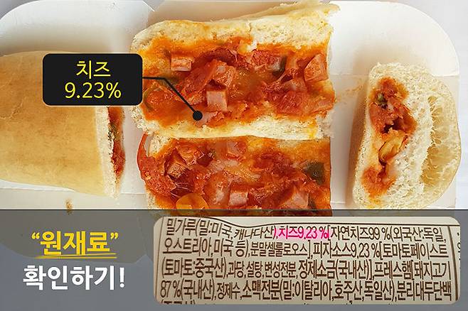 치즈 함량은 나와 있지 않지만, 윗면에 치즈가 덮여져 있어서 양은 눈으로 확인할 수 있는데요. 다소 적게 느껴지지만, 쫄깃한 치즈가 입안에서도 충분히 느껴질 정도라서 적당한 비율인 것 같아요.