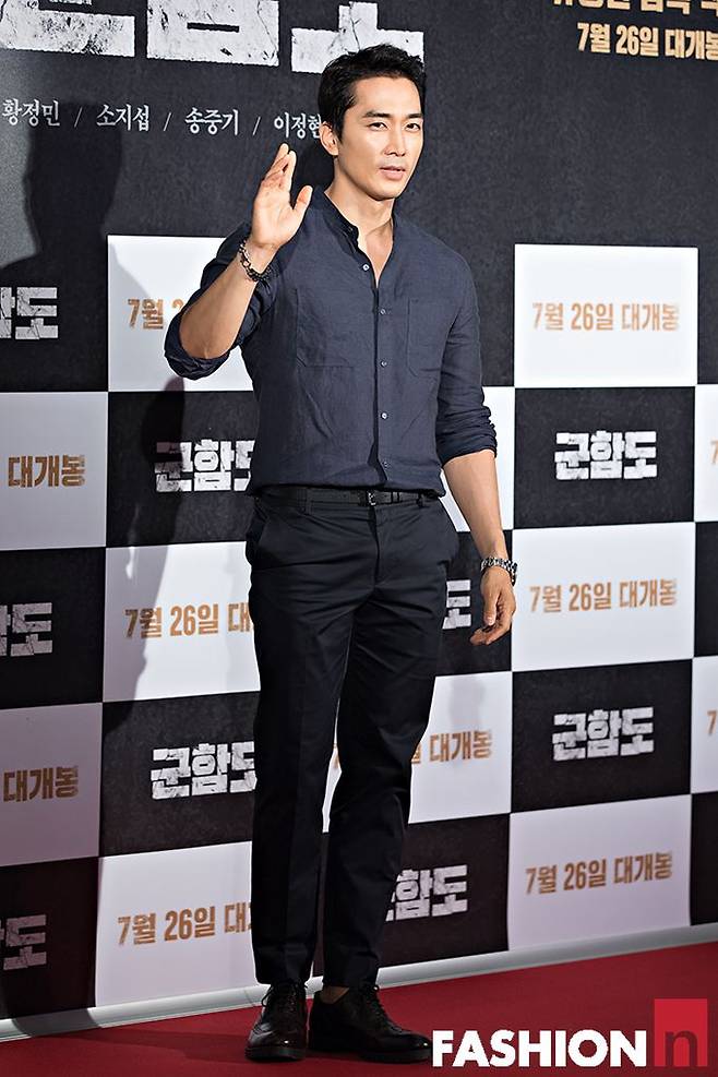 송승헌은 블랙 슬랙스에 헨리넥 스타일의 네이비톤 셔츠와 옥스퍼드 슈즈로 훈훈한 패션을 연출했으며 여전히 조각같은 비주얼로 손만 들어도 화보같은 멋진 장면을 선사해 여심을 사로잡았다. 이정재는 매직아이를 보는 듯한 셔츠를 완벽하게 소화, 그윽한 눈빛까지 더해 원조 꽃미남의 위엄을 과시했다.