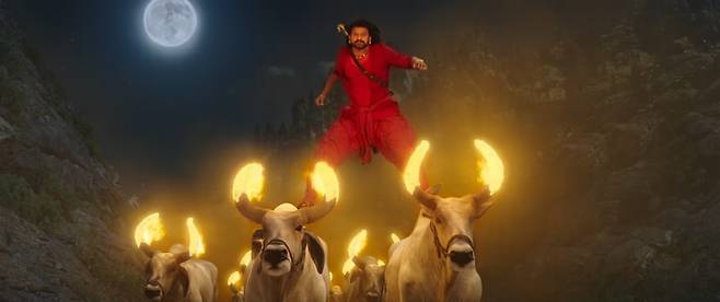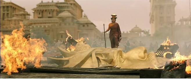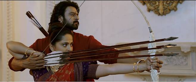 하지만 바후발리의 어머니가 의식을 위해 절대 걸음을 멈추지 않아야 하는 상황에서 벌어지는 전투, 연인과 함께 춤추듯 화살을 쏘는 장면 같이 깨알같은 아이디어가 돋보이는 장면들이 있기도 합니다.